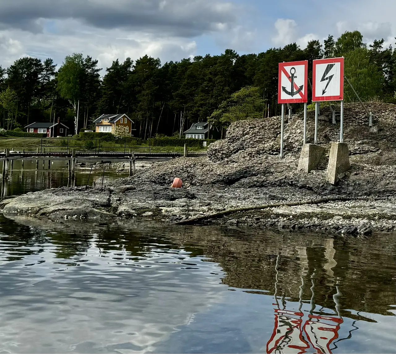 På bildet over ser vi en kabel som ligger på sjøbunnen. Kabelen er strømførende og har livsfarlig spenning. Det er derfor forbudt å ankre opp i området.