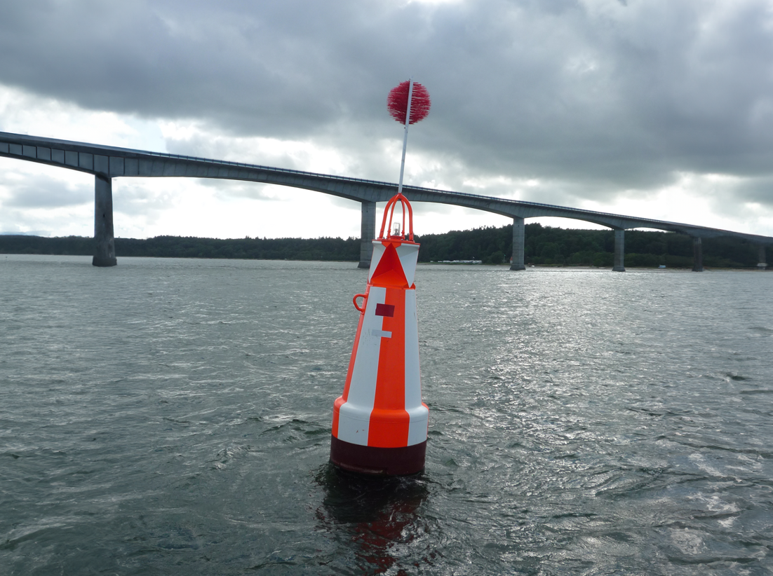 Merket er røde og hvite vertikale striper (RW).